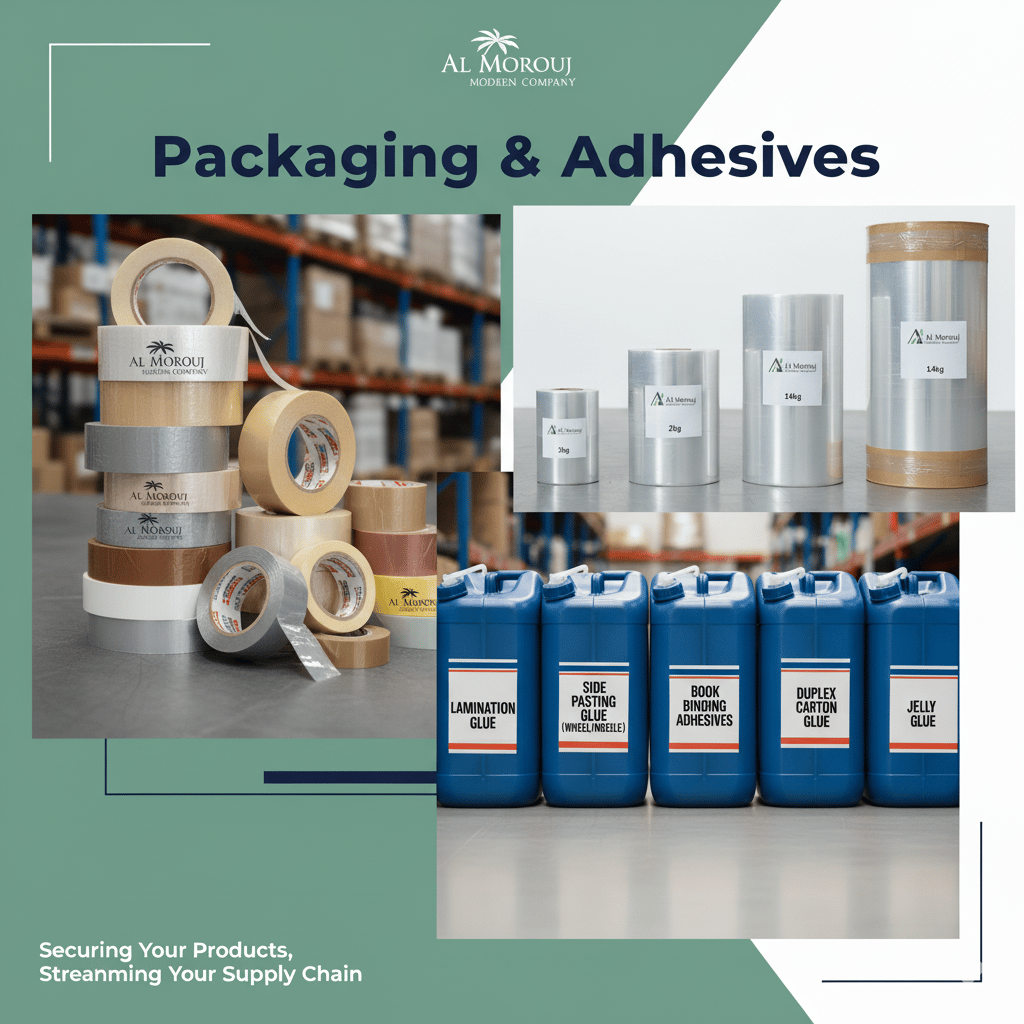 Our packaging division offers a full suite of materials to secure your products, from durable stretch films and various tapes to specialized industrial glues. We ensure your items are well-protected and stable throughout the entire supply chain.