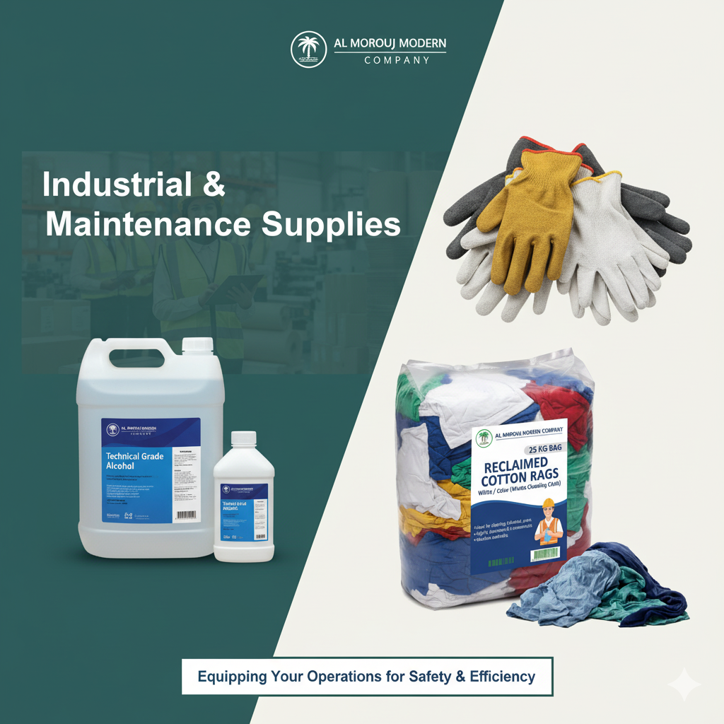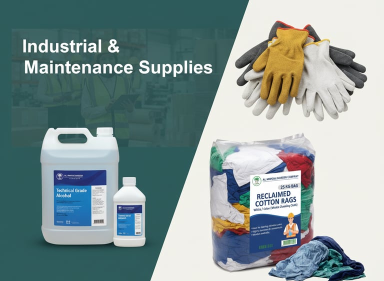 We supply essential industrial materials that keep your operations running smoothly and safely. Our range includes high-performance technical alcohol and a variety of safety gear like gloves, ensuring cleanliness and a secure work environment.