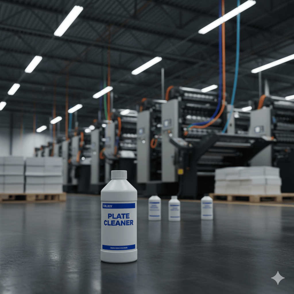 A solution for cleaning printing plates to maintain quality and prevent defects.